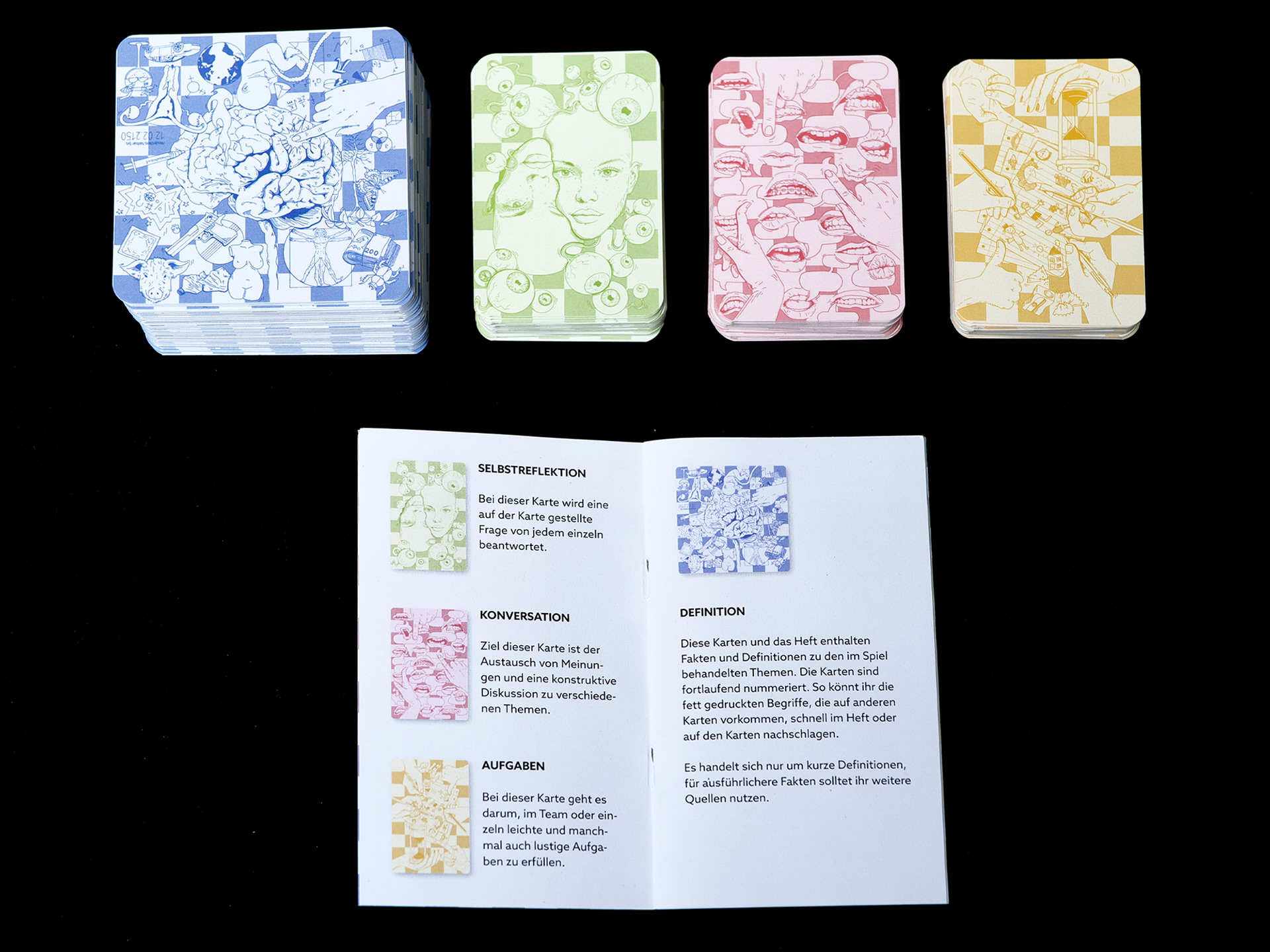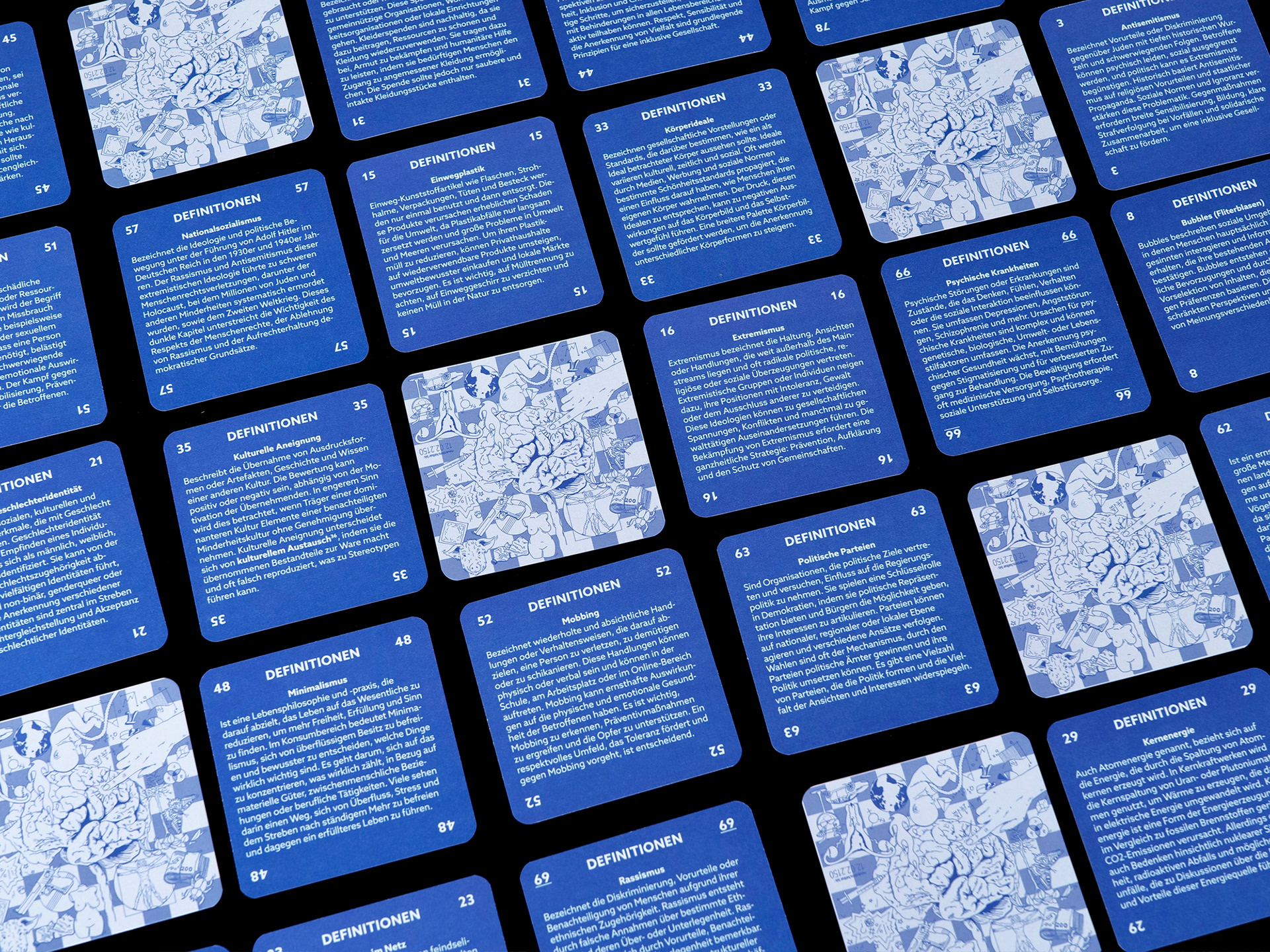 Dieses Spiel fördert tolerante Kommunikation und soll die Spieler für wichtige Themen sensibilisieren. Ziel ist es, durch die Karten Toleranz und Akzeptanz zu fördern, indem die Spieler ermutigt werden, verschiedene Perspektiven zu verstehen und zu akzeptieren. Das Spiel richtet sich an Familien und Freunde aus verschiedenen sozialen Gruppen und bietet Aufgaben und Diskussionsthemen, um zwischenmenschliche Beziehungen zu stärken und das Umweltbewusstsein zu schärfen. Spieler:innen ab 16 Jahren werden ermutigt, offen zu kommunizieren und kritisches Denken und Selbstreflexion zu fördern, während sie auch Informationen und Lösungen zu den behandelten Themen erhalten.